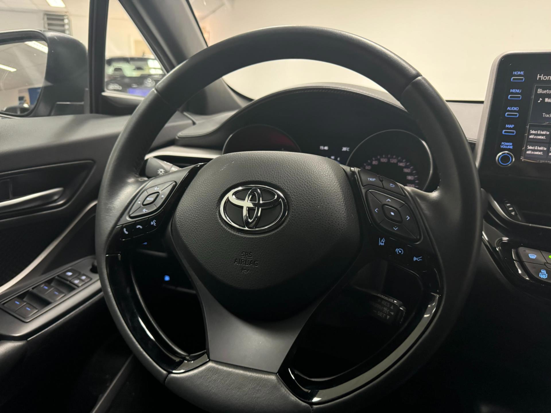 U rijdt gemakkelijk, comfortabel en zonder zorgen met deze Toyota C-HR. De aandrijving van deze Toyota wordt verzorgd door een viercilinder motor en een automatische transmissie. Bij de rijke uitrusting horen ook 17 inch lichtmetalen velgen, LED koplampen, in delen neerklapbare achterbank, actieve hoofdsteunen, LED-achterlichten en elektrisch bedienbare en verwarmde buitenspiegels.